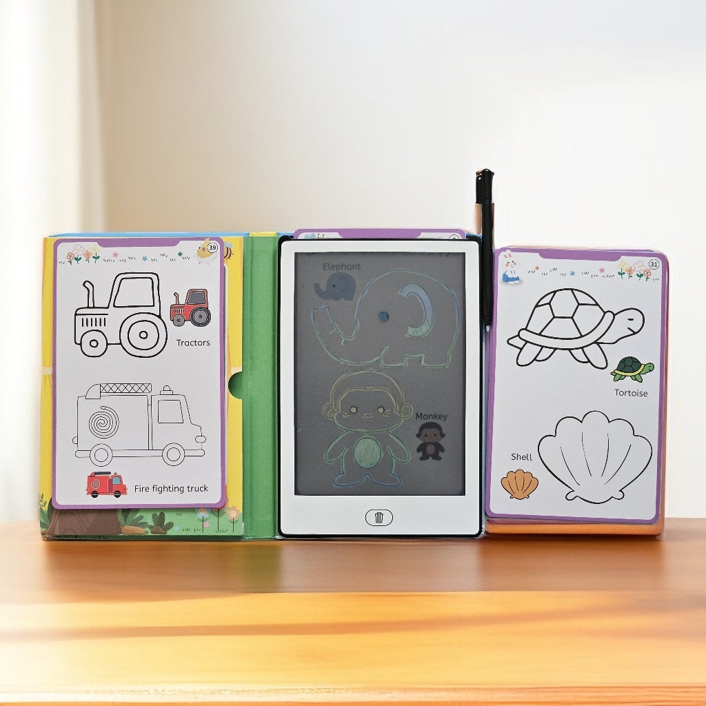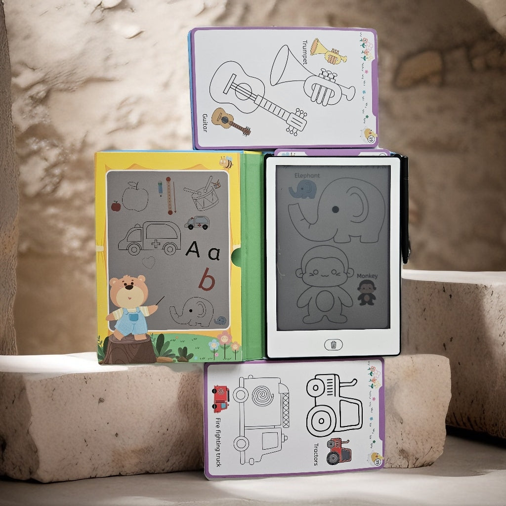 Paketet innehåller 1 LCD-ritplatta, 1 digital penna och 20 dubbelsidiga spårkort (40 sidor totalt).