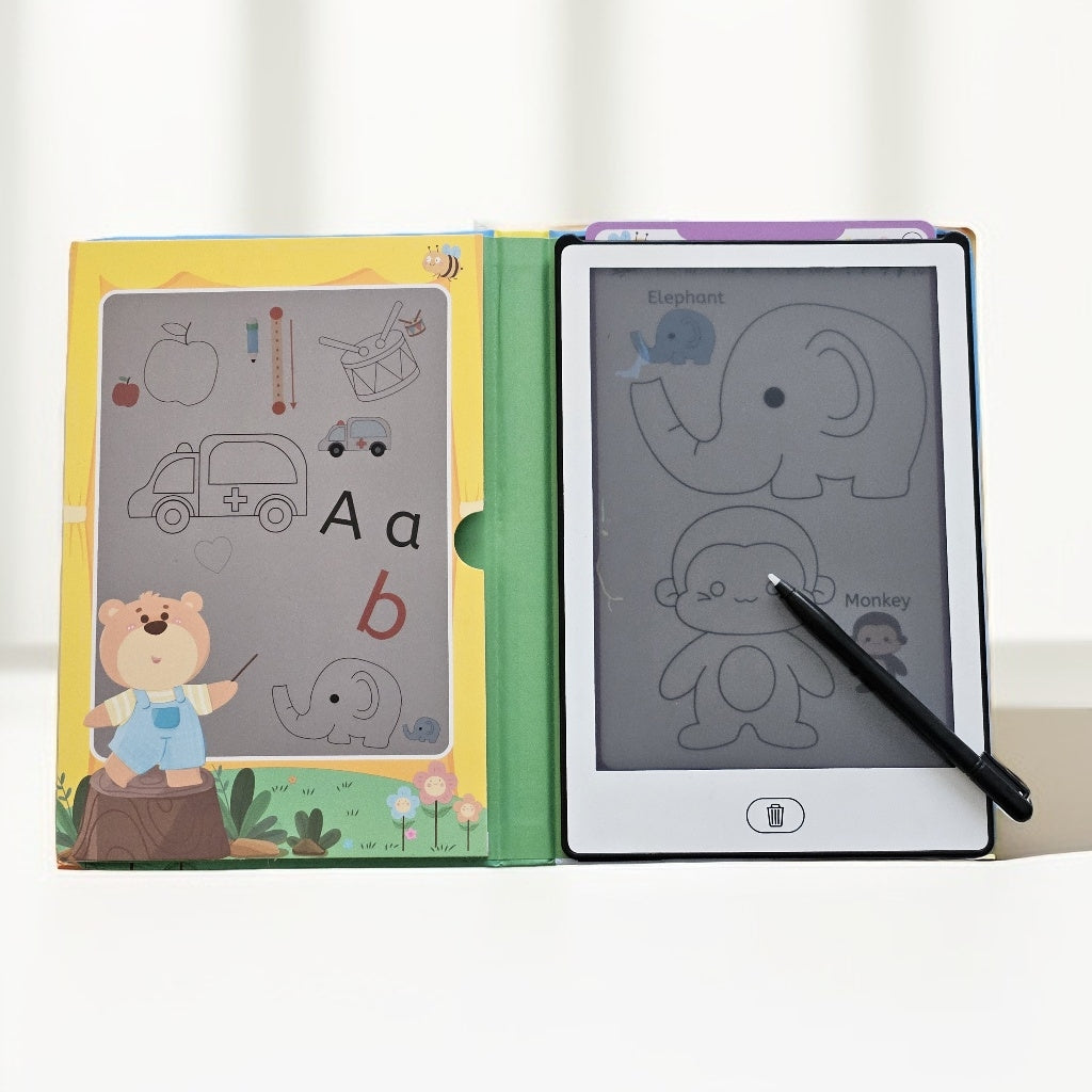 Barnet följer linjerna med pennan och kan radera med ett knapptryck för att börja om.